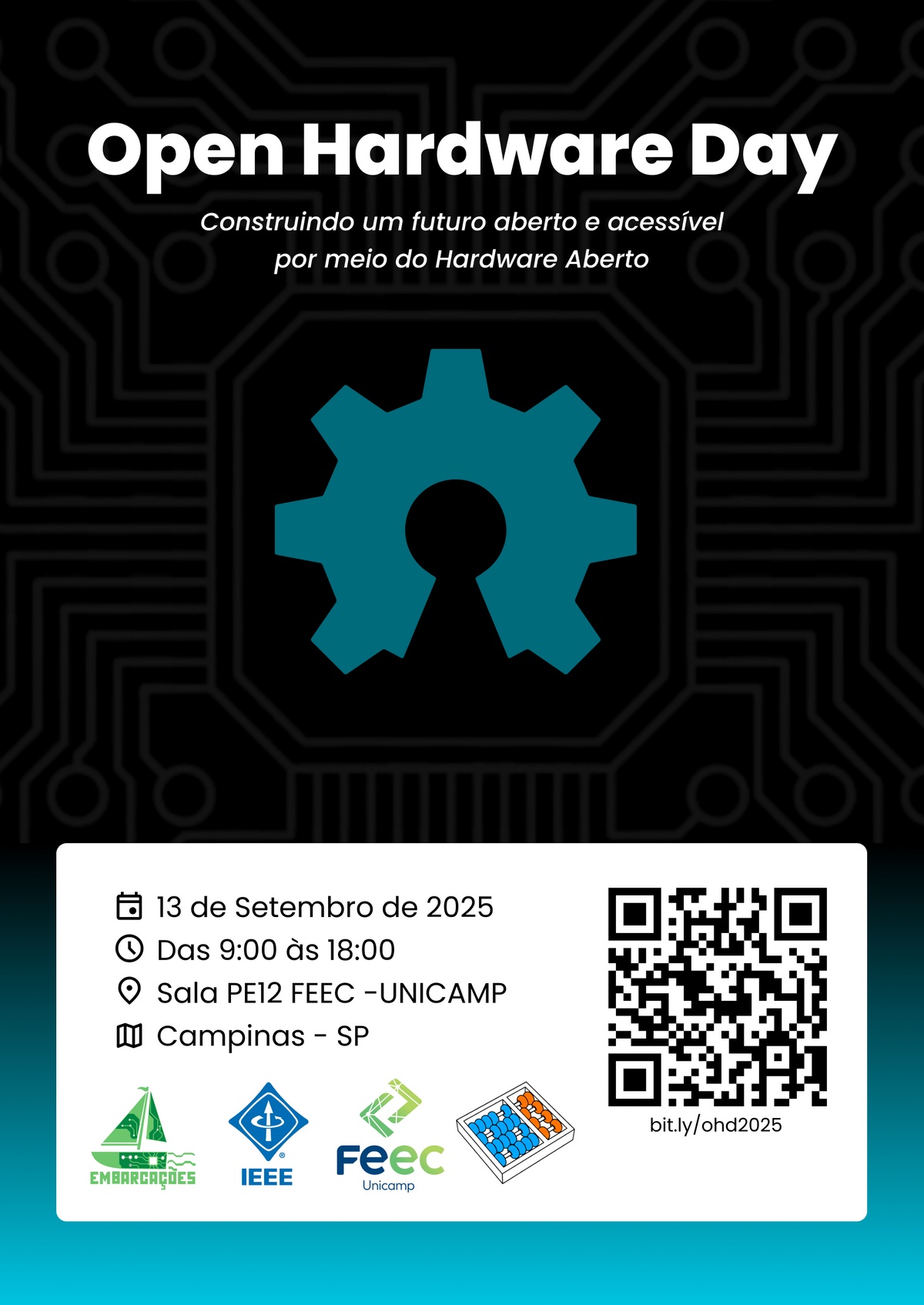 O Open Hardware Day é um evento realizado pelo Grupo de Estudos em Sistemas Embarcados e Eletrônica (Embarcações), com o objetivo de mostrar as diversas oportunidades no desenvolvimento de hardware de forma aberta.