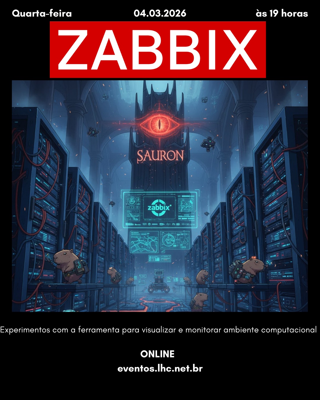 Ingresso free em https://pretix.lhc.net.br/lhc/zabbix/